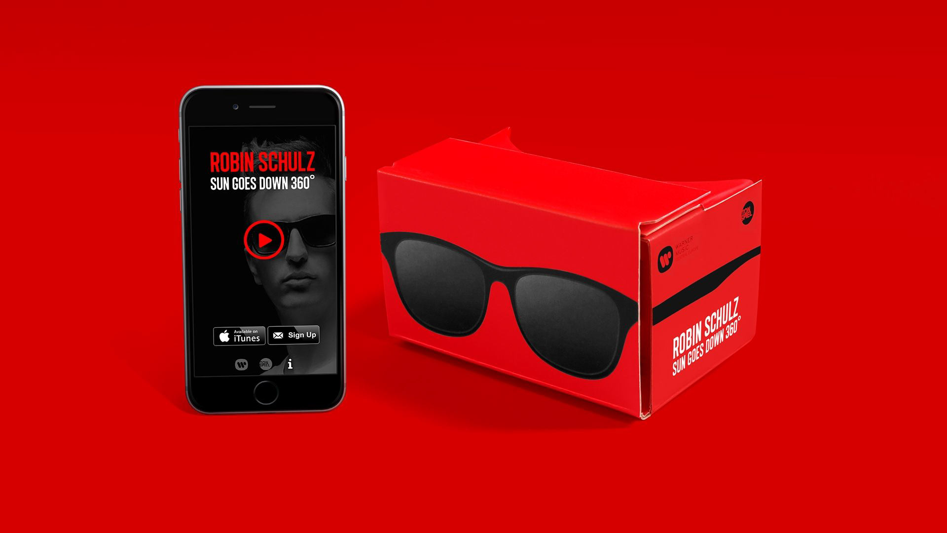 Mit Robin Schulz verbindet man Top-Remixe UND seine Sonnenbrille. Um seinen neuesten Song "Sun goes down" zu promoten, verschickten wir deshalb das erste Virtual Reality-Musikvideo an Musikentscheider in der ganzen Welt: Als Google Cardboard „Sonnenbrille“.